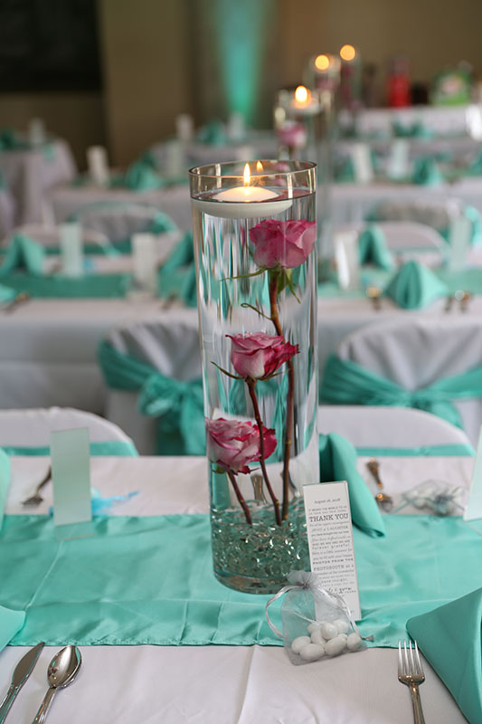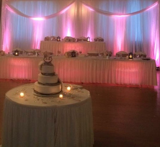 Finding a color scheme sets the tone for your wedding decorating. Let us take those colors and splash them on your walls of your reception hall, under your head table and up on your ceiling. We offer professional lighting that is either battery-operated, cable-free, or traditionally operated by controller. We also offer custom designed lighting that features your names, initials, and or wedding date.