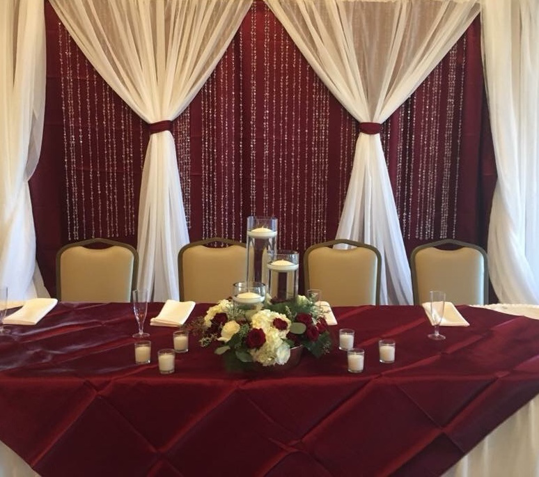 Our wedding decor services now consist of:Ceremony Set Ups, Arches, Head Table Backdrop, Centerpiece Decorations, Cake Table Features, Chair Covers & Sashes, Ceiling Treatment & Drapery, Table Linen & Napkins, and Both Set Up & Tear Down Staffing